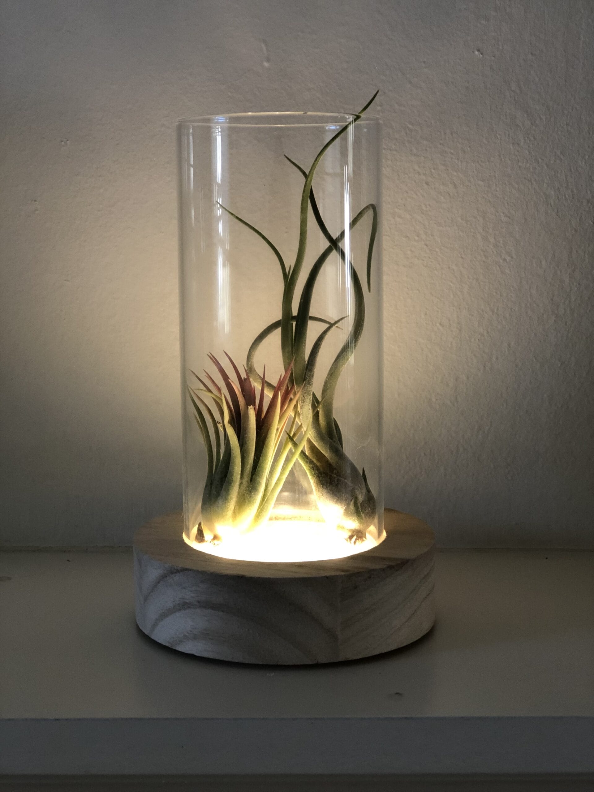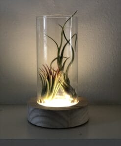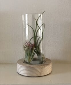 Leuke glazen vaas met een houten voet om je luchtplantjes in te presenteren! De vaas heeft een lichte houtkleur als basis en is voorzien van led lampjes. Als je er luchtplantjes in presenteert worden deze prachtig uitgelicht. Erg leuk voor in de woonkamer of slaapkamer. De vaas kan ook worden gebruikt voor andere kleine plantjes, zoals vetplantjes of kleine cactussen.
