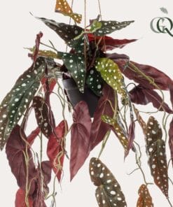 Deze mooie Begonia Maculata lijkt wel door een designer gemaakt. Toch is hij helemaal door de natuur gevormd in de diepe jungle van Mexico. Prachtig gekleurde rood met groene bladeren met zilverkleurige stippen erop. Onze kunst Stippenbegonia is schitterend nagemaakt van de beste materialen. Hang deze leuke grote hangplant in je slaapkamer, kantoor, badkamer of woonkamer. Elke ruimte knapt er meteen van op.