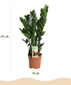 Daarnaast is de Zamioculcas ook bekend om zijn luchtzuiverende eigenschappen, waardoor het niet alleen een decoratief element is, maar ook een gezonde toevoeging aan uw leefomgeving. Het onderhoud van de Zamioculcas is minimaal, wat het perfect maakt voor zowel ervaren plantenliefhebbers als voor mensen die net beginnen met het verzorgen van planten. Met zijn robuuste uitstraling en gemakkelijke verzorging is de Zamioculcas een uitstekende keuze voor iedereen die op zoek is naar een stijlvolle en praktische kamerplant.