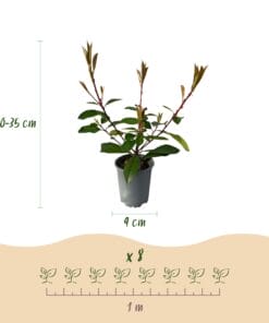 “Photinia fraseri Red Robin is een populaire haagplant die bekend staat om zijn opvallende rode bladeren in het voorjaar. Deze plant is ideaal voor het creëren van een dichte, groene afscheiding en biedt ook een prachtige kleur in de tuin.