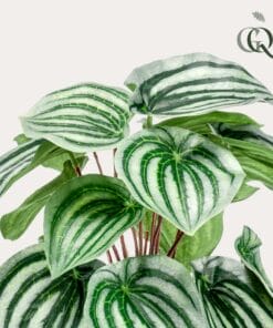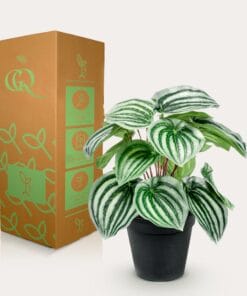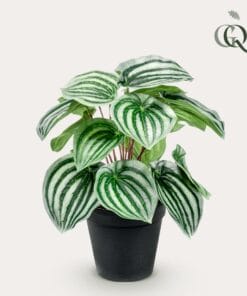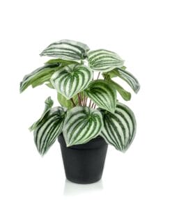 De Peperomia Argyreia is ook bekend onder de naam Watermeloenplant. En als je naar de bladeren kijkt, snap je wel waarom. Die hebben precies dezelfde tekening als die grote ronde vrucht. Heel bijzonder. En de kunst Watermeloenplant doet niet onder voor de echte versie. Haal deze mooie kunst Peperomia Argyreia snel in huis. Dit kleine kunstplantje laat namelijk een grote indruk achter.
