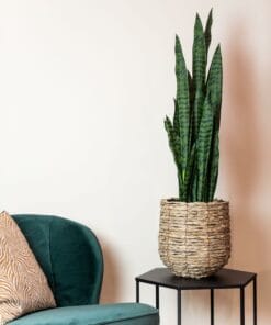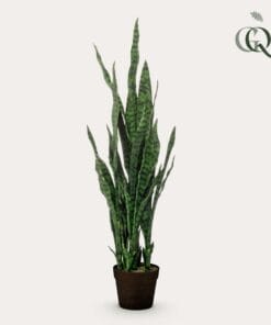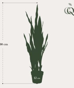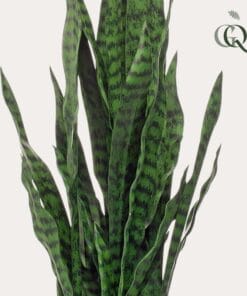Sansevieria komen in allerlei soorten en maten voor. Deze bijzondere versie heeft de naam Sanseveria Black Coral meegekregen. Wanneer je de bladeren bestudeert, snap je wel waarom. Het is een mooie grote plant die echt een statement maakt. Je hoeft je met deze kunstplant geen zorgen te maken of hij wel genoeg licht of water krijgt, hij blijft gewoon schitteren. Fleur je ruimte op met deze mooie kunst Sanseveria (ook bekend onder de Nederlandse naam Vrouwentong), daar ga je geen spijt van krijgen!