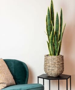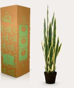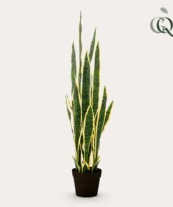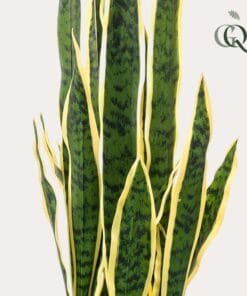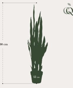 De Sanseveria Trifasciata is een Sansevieria zoals hij in de jaren 70 van de vorige eeuw bekend en geliefd werd. Daarna raakte de plant even uit zwang, maar nu is hij helemaal terug! Deze vrouwentong kunstplant, zoals hij ook wel genoemd wordt, staat in elk interieur. Van modern tot klassiek. Ook perfect op kantoor, waar je er een aantal naast elkaar kunt zetten als afscheiding. Vroeger werd de Sanseveria Trifasciata vaak als onderdeel van een groep planten in huis geplaats. Tegenwoordig plaatsen we hem liever alleen in een ruimte. Zo maakt hij echt een statement. Zie ook de Sanseveria Black Coral en de Sanseveria Cylindrica.