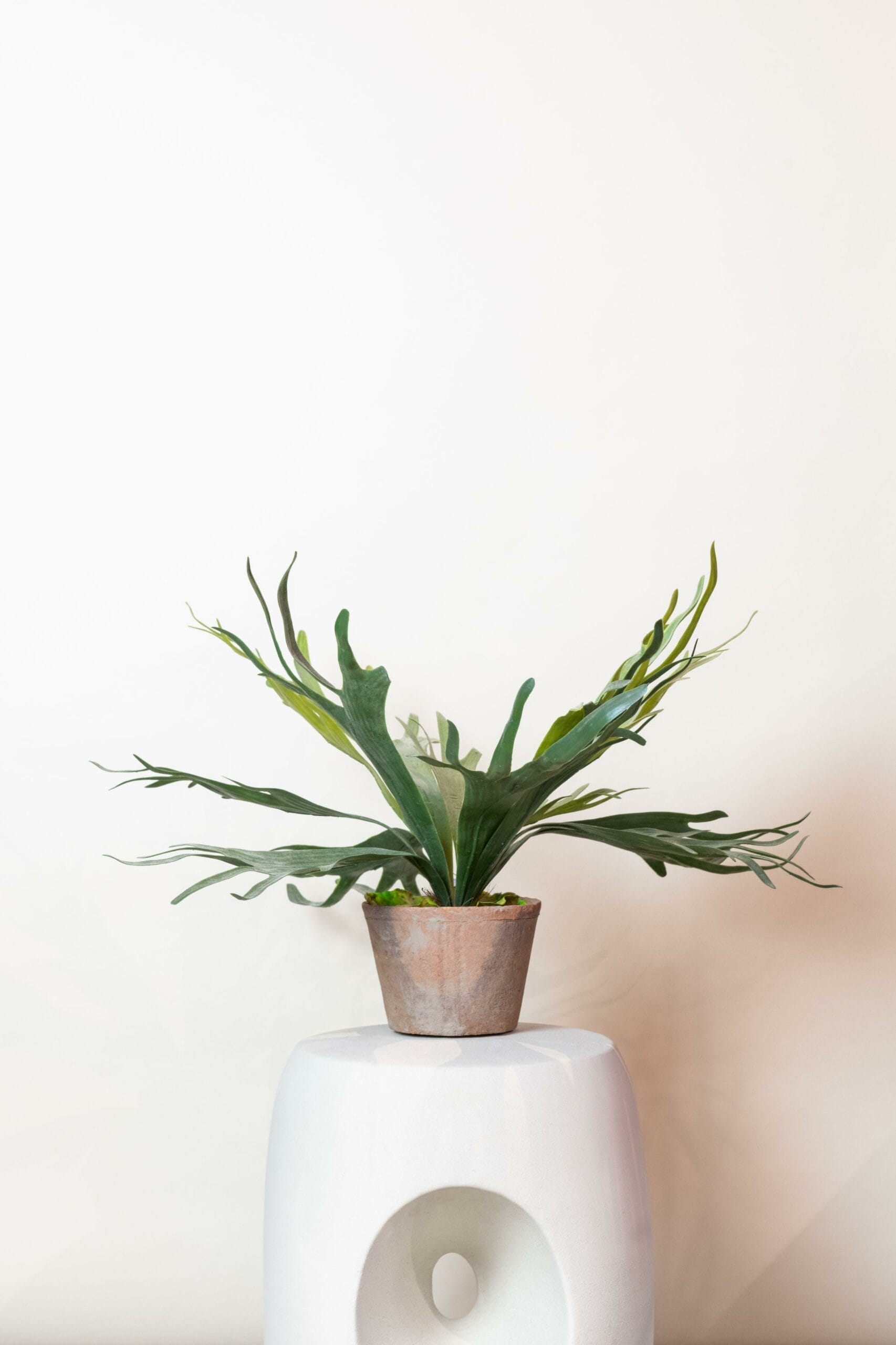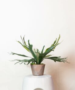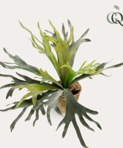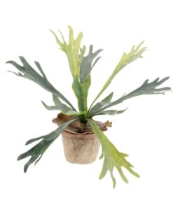 Hoe de Hersthoorn varen aan zijn naam is gekomen, kun je wel zien wanneer je naar deze plant kijkt. Hiermee haal je echt een mooie, decoratieve kunstplant in huis. In het wild kunnen de bladeren van deze varen wel een meter lang worden. Onze kunstversie blijft bescheiden en heeft geen enkele verzorging nodig. Wel af en toe een stofdoekje erover halen natuurlijk! De Staghorn Fern is in twee varianten verkrijgbaar.