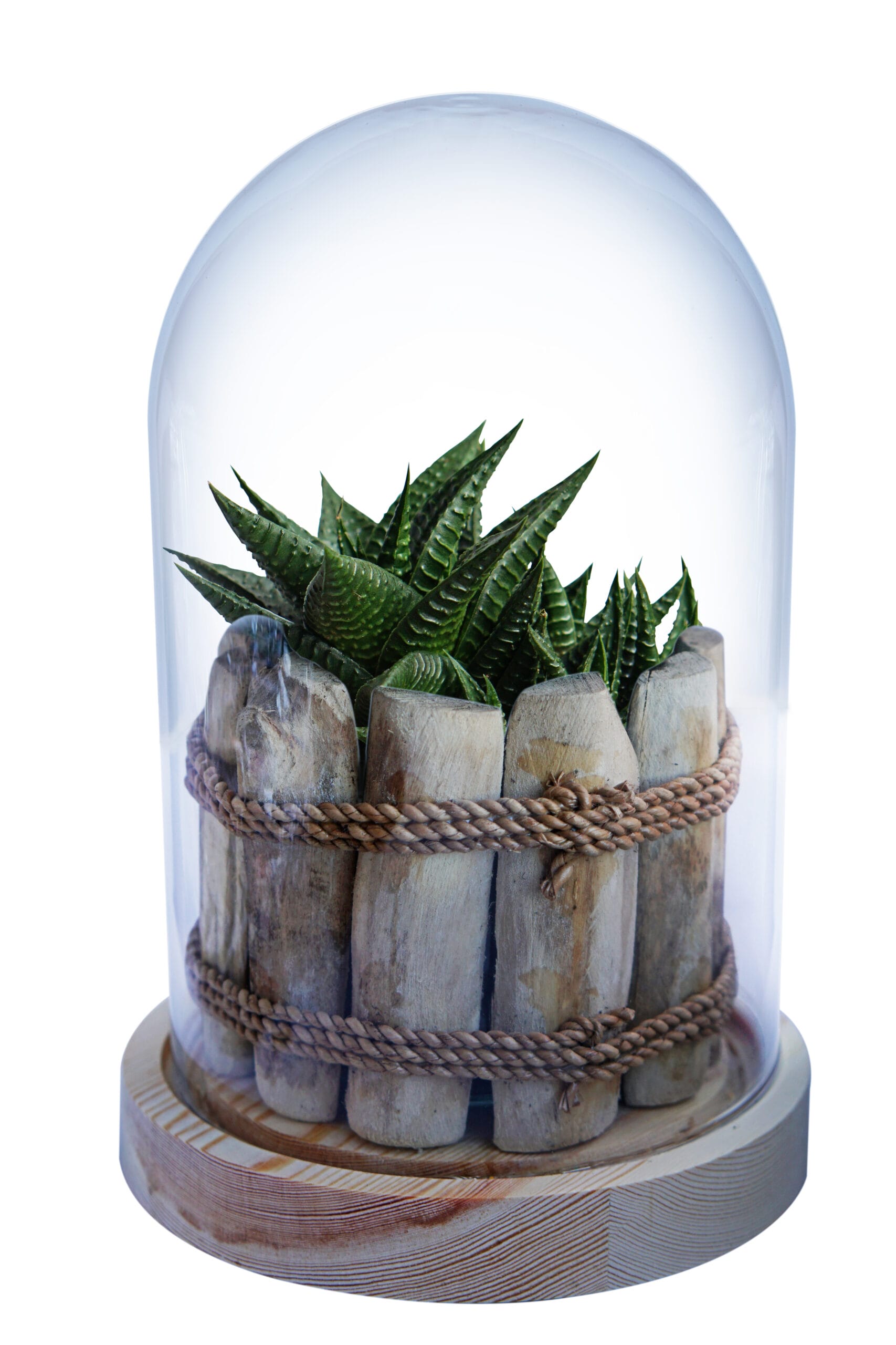 Haworthia Limafolia in Glazen Stolp met LED verlichting ↑ 25 cm ⌀ 15 cm