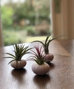 Zee-egels met luchtplantjes! Deze Jellyfish airplant is een omgekeerde versie van de bekende hangende Jellyfish met Spaans mos. De Jellyfish Tillandsia is zeker een echte eye-catcher in huis! Zet ze leuk als set van 3 luchtplantjes of nog meer bij elkaar.