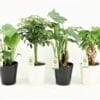 De Alocasia Cucullata wordt gekenmerkt door mooie pijlvormige groene bladeren en een opvallend compacte groei. De Pachira (die ook wel watercacao of geldboom genoemd wordt) is een mooie palm, met een gevlochten stam. De Schefflera die door zijn aparte bladeren Vingersboom genoemd wordt is een erg sterke plant en vraagt nauwelijks aandacht. De Monstera Deliciosa wordt dankzij de speciale vorm van de bladeren ook wel gatenplant genoemd. Deze hippe plant is een bron van inspiratie in de mode- en kunstwereld.
