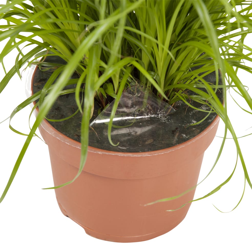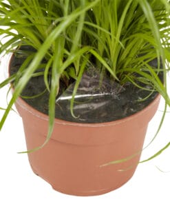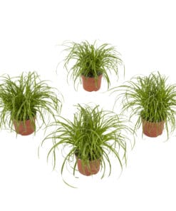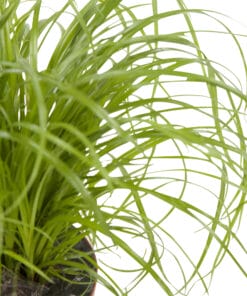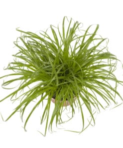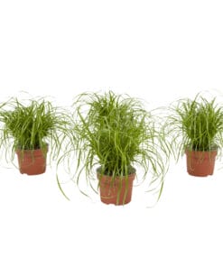 Waarom heet deze plant ‘kattengras’? Omdat je kat er dol op is. Zet deze in je huis, dan laten de katten je andere kamerplanten met rust. De plant komt van oorsprong uit Oost-Afrika en groeit daar in moerassen. Door de manier waarop het blad op de stengel zit wordt hij ook wel ‘parapluplant’ genoemd. Bij goede verzorging zal de plant bloeien met bruine bloempjes.