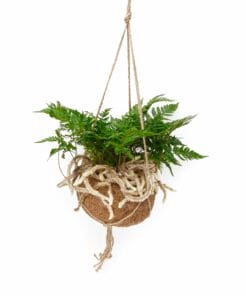 De Kokodama is een botanische schoonheid. In haar handgemaakte bol van kokosvezels voelen bijzondere en trendy planten zich thuis en creëren een natuurlijke sfeer.