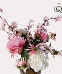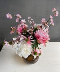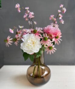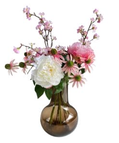 Een aanwinst voor ieder interieur! Dit vrolijke kunstboeket geeft een boost aan werkelijk ieder ruimte. De schitterende roze details geven het boeket een zomerse uitstraling. Het is een geweldige manier om je interieur op te fleuren. Het kunstboeket is van hoge kwaliteit en met zorg samengesteld door een topbloemist. De bloemen blijven lang mooi, waardoor je er voor een lange tijd plezier van hebt. En dat allemaal zonder dat je ze hoeft te onderhouden!