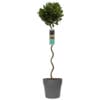 Dit is de Laurier in kogelvorm, die laag op de grond veel indruk maakt. Deze laurier is vijf jaar met zorg gekweekt door onze kweker en in vorm gesnoeid. De bladeren die u snoeit kunt u vers of gedroogd gebruiken in de keuken. Wist u dat de laurier in de klassieke oudheid een symbool voor de overwinning was? Overwinnaars werden getooid met een lauwerkrans, gemaakt van laurierbladeren. Deze plant is ook een echte overwinnaar, zowel in de keuken als in uw tuin!