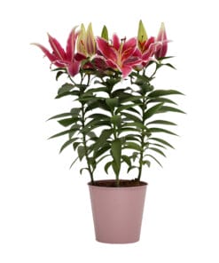 De lelie in pot is een b(l)oeiende plant die wat aandacht vraagt, maar dan ook trakteert op een ware bloemenzee met een lichtzoete aromatische geur. De plant voegt in een handomdraai een vleugje elegantie toe aan interieur of terras en met de juiste verzorging staat zij garant voor zeker twee weken bloeiplezier