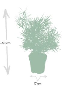 Asparagus falcatus, ook wel bekend als Asparagusvaren, is een kamerplant met een fascinerende oorsprong. Oorspronkelijk afkomstig uit Zuid-Afrika, toont deze elegante varenachtige plant delicate, verenachtige bladeren die gracieus naar beneden cascadeert, waardoor het een perfecte toevoeging is aan je collectie binnenplanten. De Asparagusvaren staat bekend om zijn luchtzuiverende eigenschappen, waardoor de sfeer in huis verbetert en een vleugje natuurlijke schoonheid toevoegt. De prachtige Asparagus falcatus is een must-have toevoeging aan elke verzameling van kamerplanten. Deze unieke plant gedijt goed in Halfschaduw omstandigheden, waardoor het perfect is voor mensen die beperkte toegang hebben tot direct zonlicht. Met zijn delicate, veerachtige bladeren en gebogen stelen, voegt het zeker een vleugje elegantie toe aan jouw ruimte. Om deze schoonheid gelukkig te houden, geef je hem één keer per week water en zorg je ervoor dat de grond gelijkmatig vochtig blijft. Haal vandaag nog de Asparagus falcatus in huis en geniet van zijn moeiteloze schoonheid!Leuk feitje: Asparagus falcatus, ook wel bekend als Sicklethorn of Ming Fern, is een prachtige plant die inheems is in Zuid-Afrika. De veerachtige, weelderige bladeren voegen een vleugje elegantie toe aan elke ruimte. Echter, ik wil je er vriendelijk aan herinneren dat deze plant puur decoratief is en niet eetbaar. Weersta dus de verleiding om het in je favoriete roerbakgerecht of salade te gooien! Geniet van de schoonheid van Asparagus falcatus, maar omarm zijn rol als niet-eetbare, betoverende kamerplant die levendig groen naar binnen brengt. Ga gerust verder en laat zijn decoratieve charme je ruimte betoveren!De Asparagus falcatus plant heeft een potmaat van 17 cm, waardoor hij geschikt is voor kleinere ruimtes of binnentuinen.Deze plant groeit meestal tot ongeveer 50 cm hoogte, waardoor het een geweldige toevoeging is aan tafelbladen of planken.Asparagus falcatus staat ook bekend als Asparagus Varen, vanwege zijn varenachtige bladeren en verenachtige uiterlijk.Deze plant gedijt goed op een plek met halfschaduw, waardoor het een ideale keuze is voor gebieden die gedurende de dag gefilterd zonlicht ontvangen.Leuke feit: Asparagus is eigenlijk geen varen of echte varen, maar eerder een lid van het geslacht Asparagus in de familie Asparagaceae.