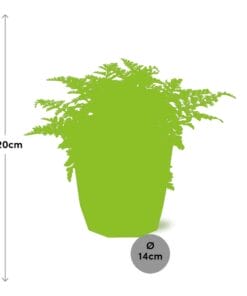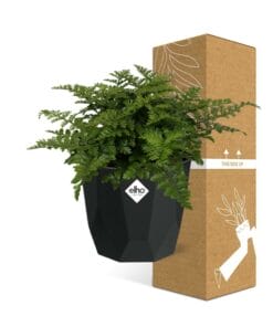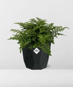 Asplenium, ook bekend als Spleenwort, gedijt op een plek met halfschaduw of schaduw, waardoor het een ideale kamerplant is. Eén keer per week water geven is voldoende voor de behoeften ervan. Bij het planten moet je een goed doorlatende grondmengsel gebruiken dat rijk is aan organisch materiaal. Meststof moet elke 2-3 maanden tijdens het groeiseizoen aan de plant worden gegeven, volgens de instructies op het etiket. Asplenium geleverd in een sierpot voegt een elegant tintje toe aan elke binnenruimte, waardoor het een perfecte keuze is voor plantenliefhebbers en beginners.