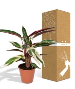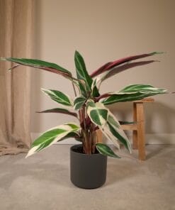 De Calathea Triostar is een tropische kamerplant en wordt ook wel the living plant genoemd. Deze bijnaam heeft de Calathea te danken aan een unieke eigenschap. De bladeren van de Calathea sluiten zodra het donker wordt en zodra het weer licht wordt gaan de bladeren weer open. De Calathea komt oorspronkelijk uit de oerwouden van Zuid-Amerika, waar de plant een hoge luchtvochtigheid gewend is.