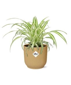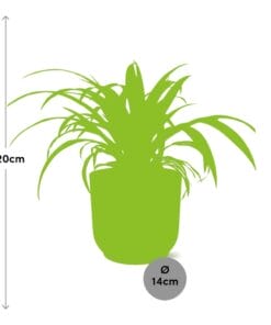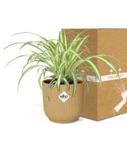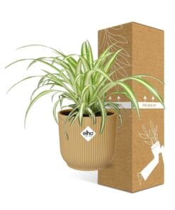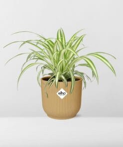 De Spinplant, ook bekend als Chlorophytum comosum, is een populaire kamerplant die geliefd is vanwege zijn luchtzuiverende eigenschappen. Hij is oorspronkelijk afkomstig uit de tropische gebieden van Zuid-Afrika, waar hij groeit in schaduwrijke gebieden van bossen en graslanden. Deze sterke plant staat bekend om zijn vermogen om zich aan te passen aan verschillende omstandigheden, waardoor het een perfecte keuze is voor binnentuinieren. De lange, boogvormige bladeren met groene en witte strepen zorgen voor een prachtig cascade-effect, waardoor het een populaire keuze is voor hangmanden of als hangplant.