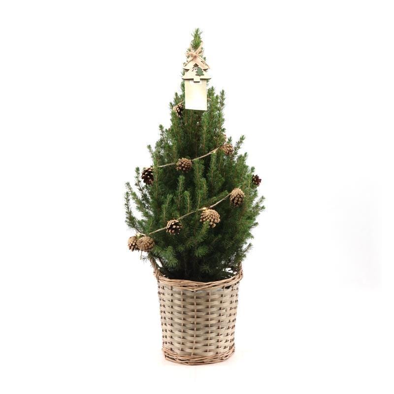 Picea ‘December’ in Basket + Pine-Cone Light ↑ 70 cm ⌀ 21