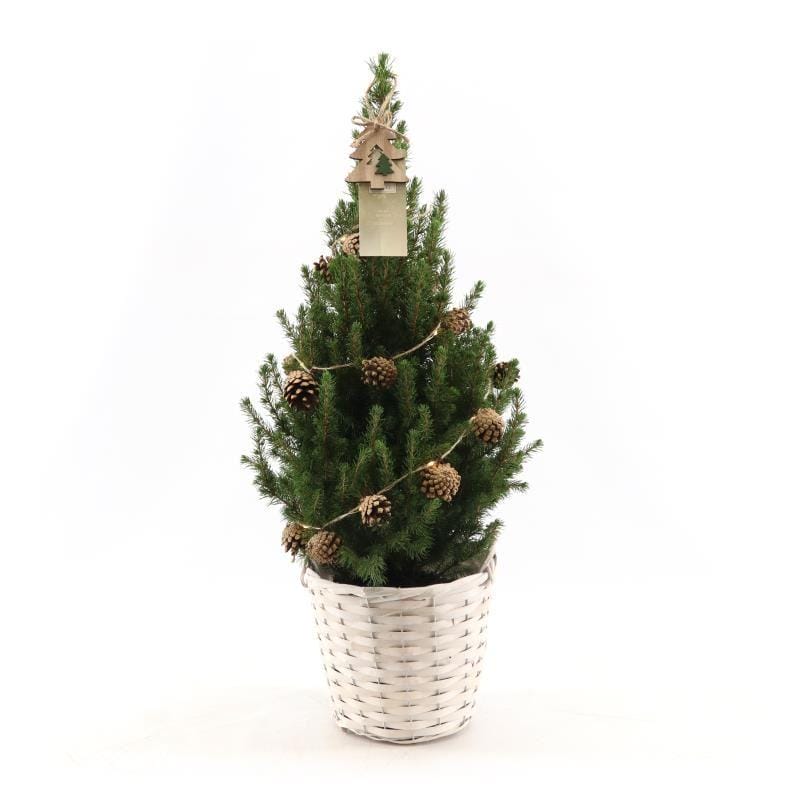 Picea in Basket White + Pine-Cone Light ↑ 70 cm ⌀ 21