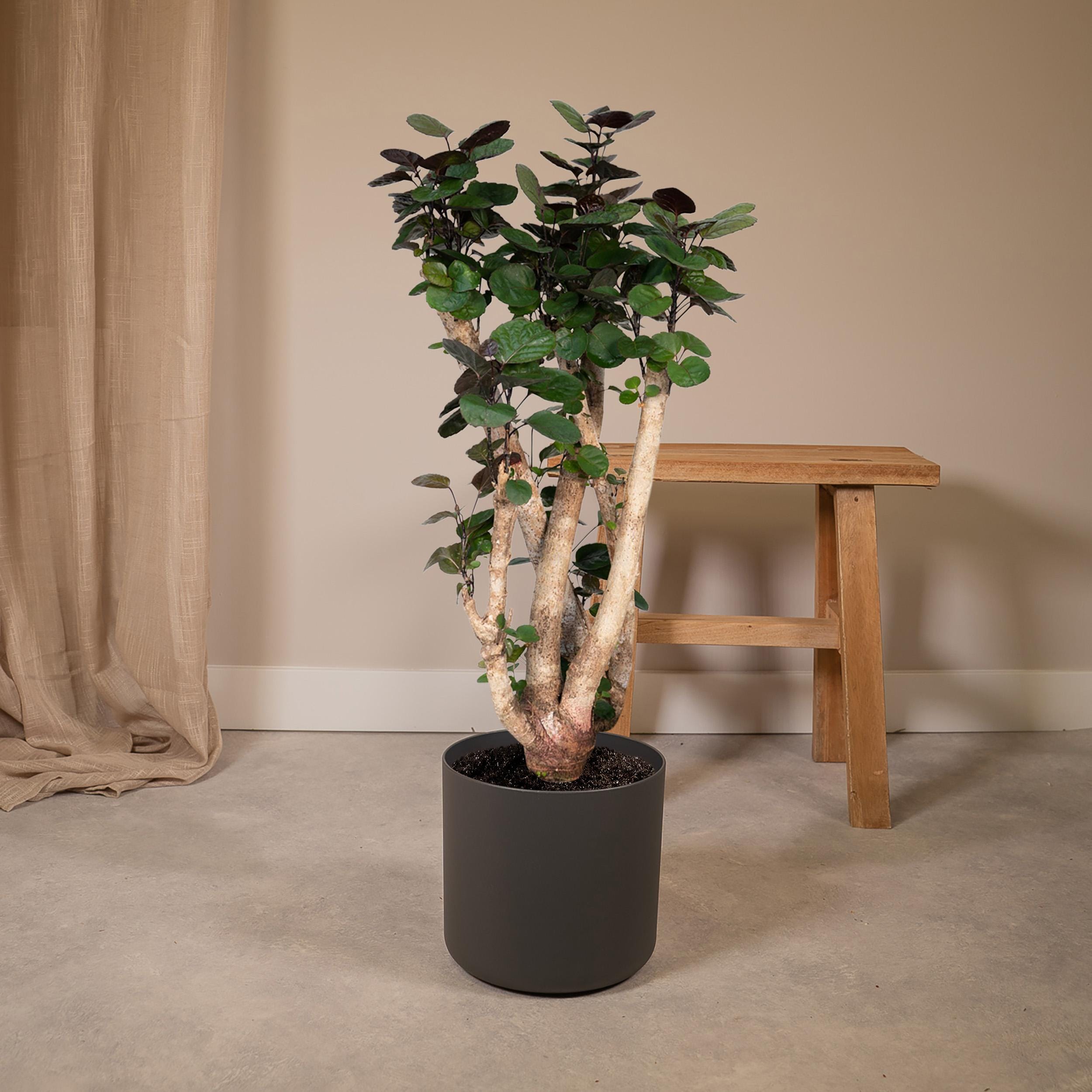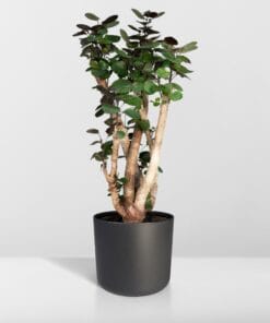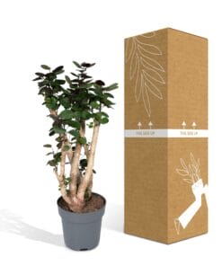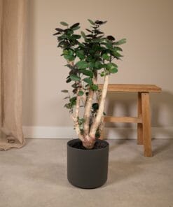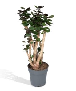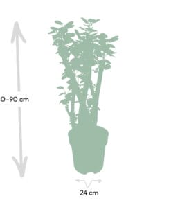 Maak kennis met Polyscias Fabian, ook wel bekend als Polyscias, de perfecte toevoeging aan jouw binnentuin. Deze plant staat bekend om zijn opvallende verschijning en makkelijke verzorging en komt oorspronkelijk uit tropische regio’s. Met zijn donkergroene bladeren en compacte groei brengt Polyscias Fabian een vleugje elegantie in elke ruimte. Of je nu een ervaren plantenliefhebber bent of net begint aan je binnentuinreis, deze polyscias mag niet ontbreken. Geniet van de voordelen van een weelderige, prachtige plant die binnenshuis gedijt en creëer een uitnodigende oase die je welzijn zal verbeteren. Polyscias planten gedijen het beste op een plek met halfschaduw, zorg ervoor dat ze wat indirect zonlicht ontvangen. Geef de plant eens per week water en vermijd overbewatering. Het ideale grondtype voor Polyscias is goed doorlatend, met een mix van veenmos en perliet. Om de plant gezond te houden, bemest deze elke twee tot vier weken tijdens het groeiseizoen met een gebalanceerde vloeibare meststof. Denk eraan om de instructies op de verpakking van de meststof te volgen en voorzichtig te zijn met overbemesting, omdat dit de plant kan schaden.Wist je dat Polyscias Fabian, ook bekend als de Fabian Aralia, een populaire kamerplant is vanwege zijn prachtige bladeren en luchtzuiverende eigenschappen? Deze onderhoudsarme plant, met zijn weelderige groene bladeren, kan een vleugje elegantie toevoegen aan elke ruimte. Het is echter belangrijk om op te merken dat hoewel de Fabian Aralia een lust voor het oog is, hij niet geschikt is voor consumptie. Laten we deze plant dus alleen gebruiken ter decoratie en genieten van zijn schoonheid zonder een hapje te proberen!- Polyscias Fabian is een populaire kamerplant met een potmaat van 24 cm.- Deze mooie plant bereikt een indrukwekkende hoogte van ongeveer 80 cm.- Polyscias Fabian is ook bekend onder zijn wetenschappelijke naam, Polyscias.- Deze plant gedijt op een plek met gedeeltelijke schaduw, waardoor hij ideaal is voor binnenruimtes met beperkt zonlicht.- Leuk feitje: Polyscias Fabian staat bekend om zijn luchtzuiverende eigenschappen, waardoor de luchtkwaliteit in uw huis of kantoor verbetert.