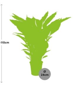 Spathiphyllum ‘Sweet Sebastiano’ Blanco, ook wel bekend als de Peace Lily, is een prachtige kamerplant die elegantie en rust toevoegt aan elke ruimte. Afkomstig uit tropische gebieden, gedijt deze plant goed in weinig licht, waardoor hij perfect is voor kantoren of woningen. Met zijn glanzende, donkergroene bladeren en levendige witte bloemen brengt ‘Sweet Sebastiano’ Blanco een vleugje natuurlijke schoonheid in uw interieur. Makkelijk te verzorgen, zuivert het de lucht en creëert het een gezondere omgeving. Breng sereniteit en stijl in uw ruimte met deze SEO geoptimaliseerde Peace Lily. Om voor Spathiphyllum te zorgen, zoek een plek die halfschaduw biedt, omdat direct zonlicht de bladeren kan beschadigen. Geef het eens per week water om de grond vochtig te houden, maar niet doorweekt. Vredeslelie geeft de voorkeur aan goed doorlatende grond, dus gebruik een mengsel van veenmos, perliet en potgrond. Bemest de plant elke 2-3 maanden met een evenwichtige vloeibare meststof, verdund tot halve sterkte. Vermijd overbemesting, omdat dit de plant kan beschadigen.De Spathiphyllum ‘Sweet Sebastiano’ Blanco, ook bekend als de Peace Lily, is een populaire keuze voor decoratie binnenshuis vanwege zijn elegante witte bloemen en weelderig groene bladeren. Deze betoverende plant heeft een trucje achter de hand – het is wetenschappelijk bewezen dat het de lucht zuivert door schadelijke zwevende gifstoffen op te nemen! Het is echter belangrijk om op te merken dat hoewel de Peace Lily geweldig is om de esthetische aantrekkingskracht van uw huis of kantoor te verbeteren, het niet veilig is om te consumeren. Dus, onthoud om zijn schoonheid te bewonderen en te genieten van de voordelen van luchtzuivering, maar laat het uit uw keuken!- Spathiphyllum ‘Sweet Sebastiano’ Blanco is een populaire plant die bekend staat om zijn prachtige witte bloemen.- Met een potmaat van 24 cm is deze plant perfect om een vleugje elegantie toe te voegen aan elke binnenruimte.- Met een hoogte van ongeveer 110 cm maakt Spathiphyllum ‘Sweet Sebastiano’ Blanco een indrukwekkende uitstraling met zijn indrukwekkende hoogte.- Ook bekend als Vredeslelie, wordt deze plant geliefd om zijn vermogen om de lucht te zuiveren en een rustgevende sfeer te creëren.- Spathiphyllum ‘Sweet Sebastiano’ Blanco gedijt in halfschaduw en is daardoor een ideale keuze voor binnenruimtes die geen direct zonlicht ontvangen.- Leuk weetje: Naast zijn prachtige bloemen kunnen de bladeren van de Spathiphyllum ‘Sweet Sebastiano’ Blanco een visuele aanwijzing geven over zijn gezondheid. Als de bladeren beginnen te hangen, betekent dit dat de plant water nodig heeft, maar als de bladeren geel worden, kan dit een teken zijn van overbewatering.