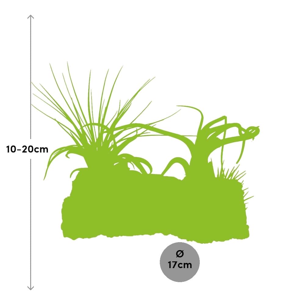 Deze Tillandsia wordt geleverd in een maat van 17 cm.De huidige hoogte van deze Tillandsia is ongeveer 17 cm.Deze plant geeft de voorkeur aan een plek in halfschaduw.Het verzorgen van Tillandsia is ontzettend gemakkelijk.Het heeft een uniek en opvallend uiterlijk.