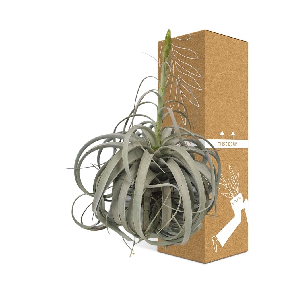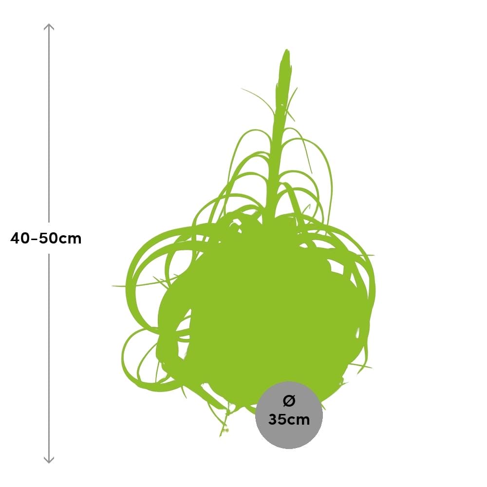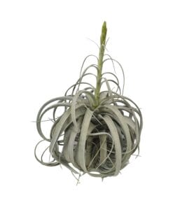 Tillandsia xerographica, ook bekend als Tillandsia, is een prachtige kamerplant die een vleugje elegantie toevoegt aan elke ruimte. Inheems in bergachtige gebieden in Midden-Amerika, zal deze luchtplant zeker fascineren met zijn unieke, krullende bladeren en zilvergroene uitstraling. Met weinig verzorgingseisen gedijt Tillandsia xerographica goed in binnenomgevingen, waardoor het een ideale keuze is voor plantenliefhebbers van alle niveaus. Breng de schoonheid van de natuur binnenshuis met deze onderhoudsarme Tillandsia xerographica. De Tillandsia Xerographica, een verbluffende luchtplant, gedijt op een plek met halfschaduw. Met zijn lage lichtbehoeften verfraait deze unieke plant moeiteloos elke ruimte. Om ervoor te zorgen dat hij goed gedijt, geef deze schoonheid eens in de 8-10 dagen water. Zijn minimale verzorgingsroutine maakt het een perfecte aanvulling op een drukke levensstijl. Met zijn indrukwekkende formaat en prachtige zilvergroene bladeren zal de Tillandsia Xerographica ongetwijfeld je gasten betoveren. Verhoog je binnentuin en breng de elegantie van de natuur binnen handbereik met deze gemakkelijk te onderhouden luchtplant krachtpatser.Wist je dat Tillandsia xerographica, ook wel bekend als de Koning van de Luchtplanten, beschikt over een opmerkelijke overlevingsaanpassing? Deze planten absorberen vocht en voedingsstoffen via hun gespecialiseerde schubben, waardoor ze kunnen gedijen in droge omgevingen. Met hun unieke zilvergrijze bladeren en sierlijke, gekrulde bladeren is Tillandsia xerographica een ideale keuze voor interieurdecoratie. Het is echter belangrijk om te onthouden dat hoewel deze planten er aantrekkelijk uitzien, ze strikt voor decoratieve doeleinden bedoeld zijn. Dus ga lekker zitten en laat deze prachtige luchtplant een vleugje natuurlijke schoonheid toevoegen aan jouw ruimte, maar probeer er alsjeblieft niet op te knabbelen!- Tillandsia xerographica heeft een potmaat van 35 cm, waardoor het geschikt is voor middelgrote plantenbakken.- Deze prachtige plant bereikt meestal een hoogte van ongeveer 50 cm, waardoor het een vleugje elegantie toevoegt aan elke ruimte.- Tillandsia xerographica staat ook bekend als Tillandsia en behoort tot de bromeliafamilie.- Het gedijt het beste op een plek met gedeeltelijke schaduw, waardoor het een goede keuze is voor binnen- of buitentuinen.- Leuk feitje: Tillandsia xerographica heeft unieke krullende bladeren die een ingewikkeld rozetvormig patroon vormen, waardoor het een betoverende uitstraling heeft.