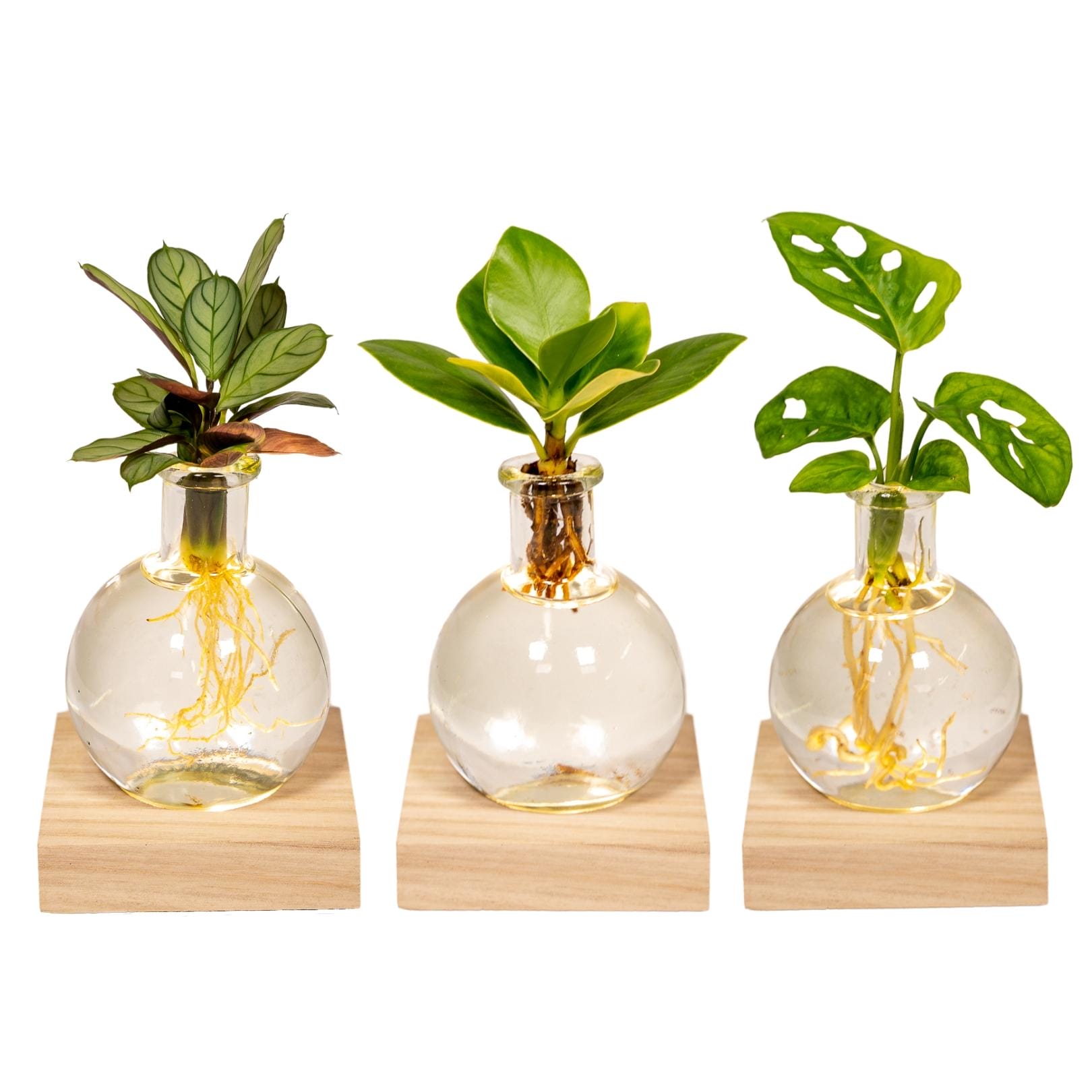 Trio Monstera, Clusia en Calathea in Samoa glas met Led verlichting