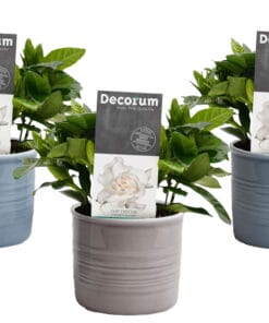 De Gardenia (Jasminoides) heet in het Nederlands: Kaapse Jasmijn. Deze prachtige plant komt oorspronkelijk uit het zuiden van Azië. Bij goede verzorging kan de Gardenia maanden achtereen heerlijk geurende roomwitte roosachtige bloemen geven. Deze bloemen zorgen ervoor dat uw huiskamer dag in dag uit op een natuurlijke manier voorzien wordt van een jasmijnachtige geur. De donkergroene glanzende bladeren zorgen ervoor dat de plant ook zeer decoratief is op het moment dat er even geen open bloem in de plant aanwezig is. De Gardenia kan in de warmere periode ook heel goed buiten worden geplaatst op het terras of balkon, maar wil vanwege haar tropische origine wel graag binnen overwinteren. Leuk weetje: de Gardenia is ook populair onder celebrities: koningin Maxima had de bloemen in haar bruidsboeket en Madonna en Lady Gaga zijn ook dol op de Gardenia!