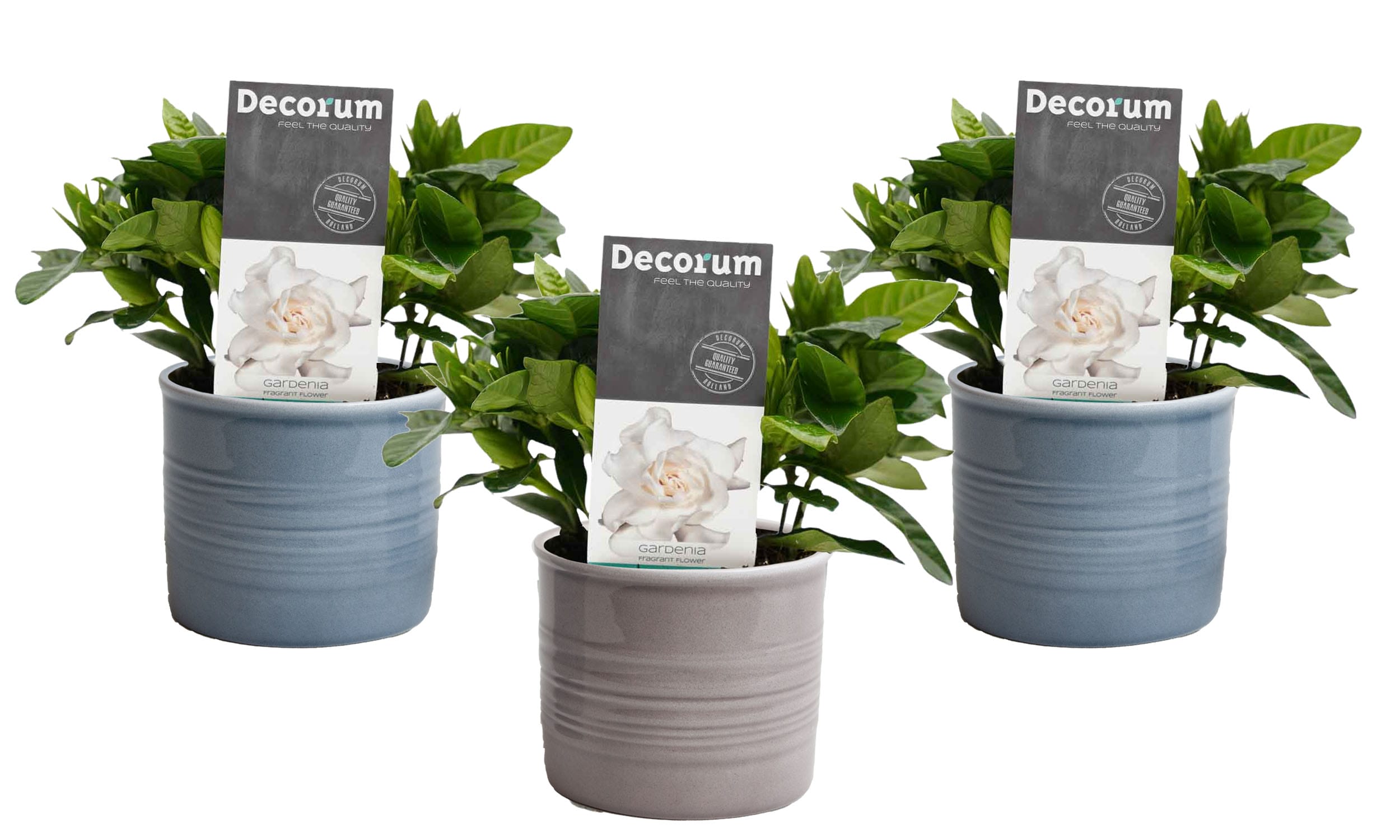 Mini Green | Trio Gardenia Jasminoïdes in Laos keramiek ↑ 15 cm ⌀ 10