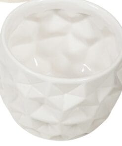 Glanzend wit geverfd aardewerk. Geschikt voor potten van 12 cm.