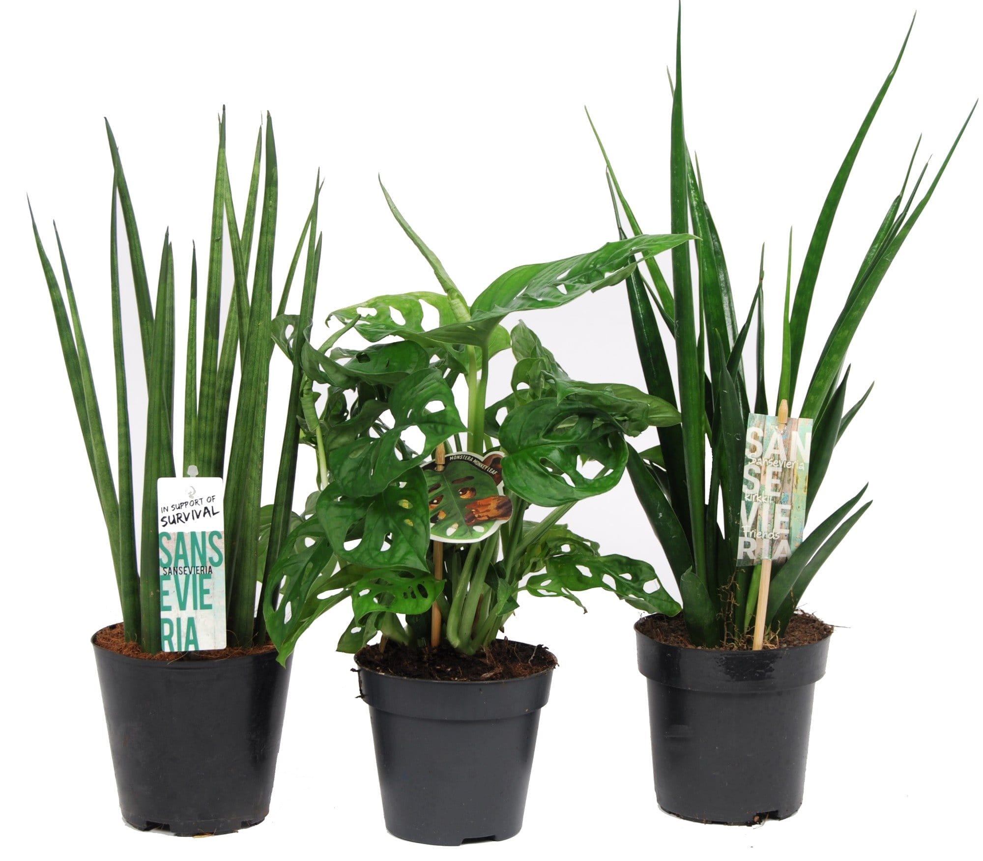 Mix Sansevieria en Monstera – 3 stuks ↑ 28 cm ⌀ 12 cm