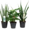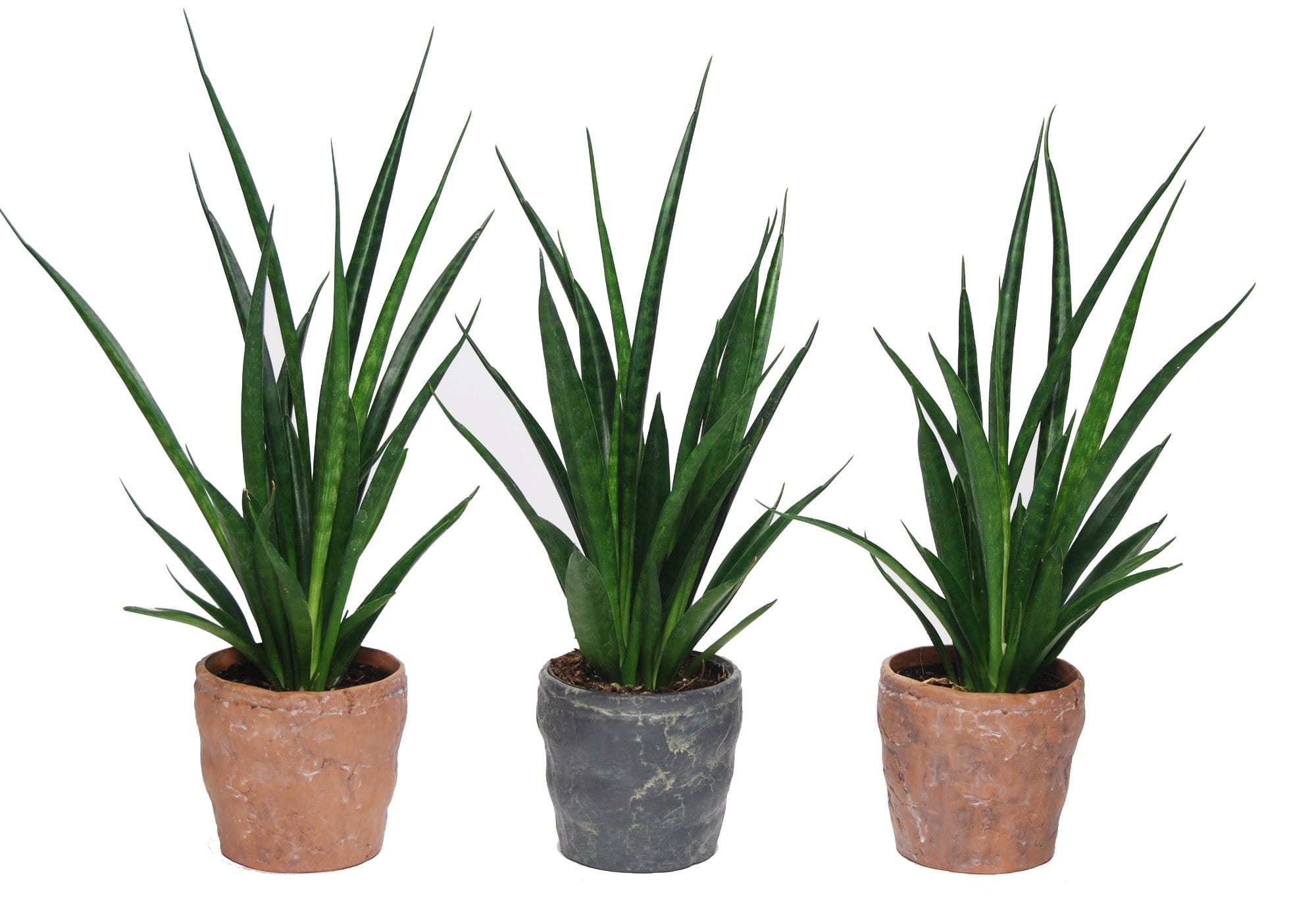 De Sansevieria of vrouwentong is een gemakkelijke plant. Deze set van drie Sansevieria in leuke sierpotten van keramiek heeft niet veel water nodig en stelt verder ook weinig eisen.
