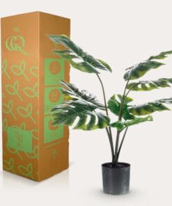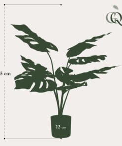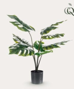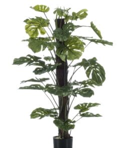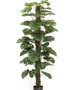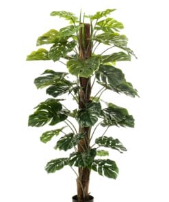 De Monstera Deliciosa, in het Nederlands Gatenplant genoemd, is een van de meest populaire kamerplanten. De plant groeit oorspronkelijk in de tropische bossen van Zuid Mexico en kan daar meters hoog worden. Onze kunst Monstera Deliciosa is verkrijgbaar in een hoogte van 60, 80 en 95 centimeter en geeft een levendige sfeer aan elke ruimte. Een echte Monstera plant kan schadelijk zijn voor huisdieren, iets waar je bij deze versie niet bang voor hoeft te zijn. Onze kunst Gatenplant is ook erg geschikt voor op kantoor. Je kunt de stelen buigen voor een extra natuurlijk effect. Ook verkrijgbaar op stok in de maten 120, 150 en 180 cm.