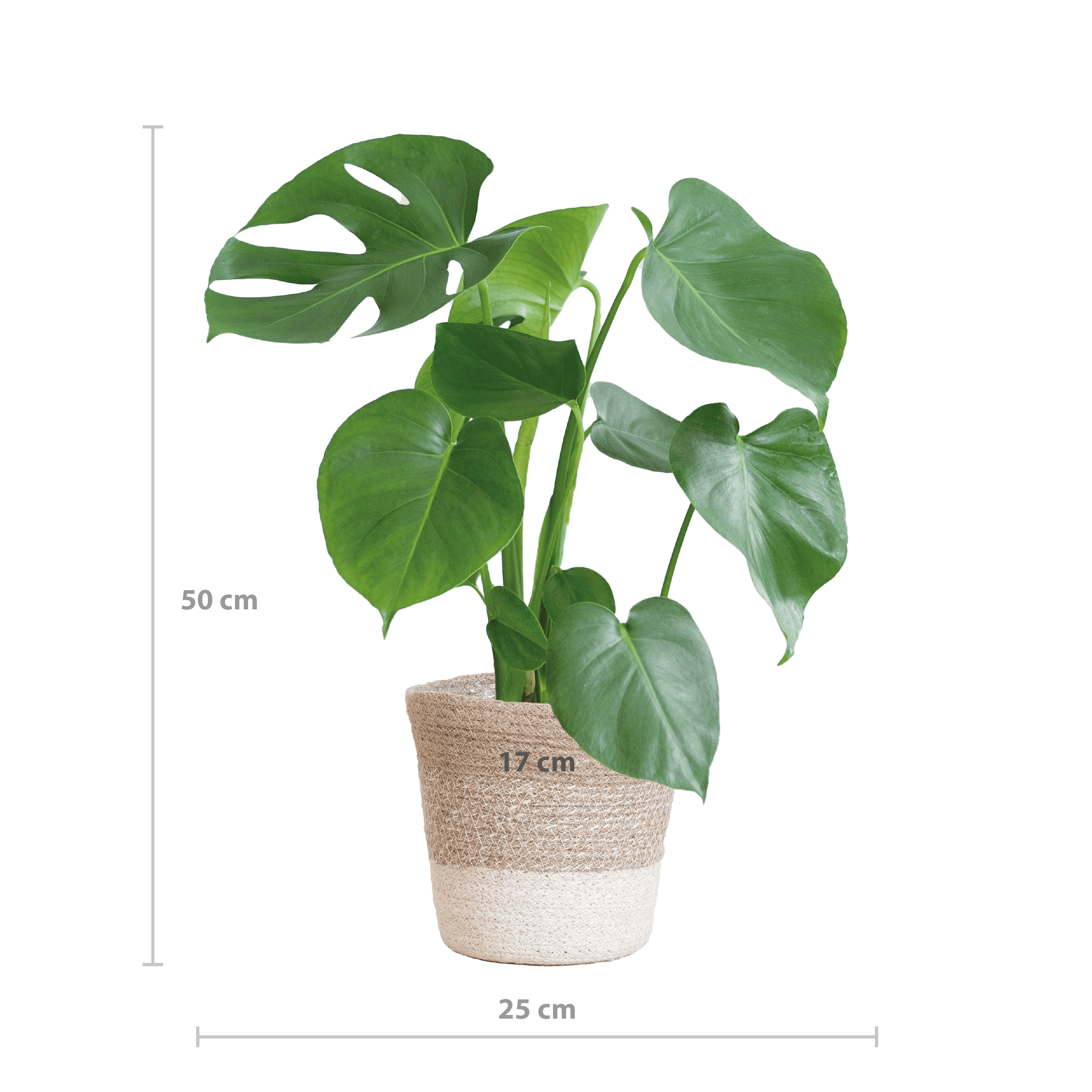 Monstera Deliciosa met mand wit – 50Cm – Ø17