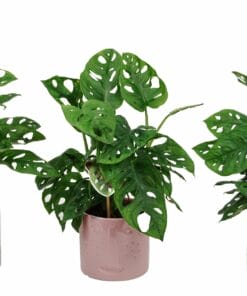 Wat een blikvanger is dit! Met zijn gaten in het blad en ontzettende makkelijke verzorging een echte must-have! De plant komt van origine uit Midden- en Zuid Amerika. Daar groeit hij langs de reusachtige bomen omhoog en kan hij bladeren krijgen tot wel een meter lang! De bijnaam van deze plant is ook wel ‘gatenplant’. Dat spreekt voor zich, want dit blad zit vol met gaten in verschillende maten en vormen. De plant blijft mooi groen als hij op een lichte plek staat, maar niet in de volle zon. Mocht hij toch een gele gloed gaan krijgen, dan is dat snel opgelost door hem wat verder van het raam af te zetten. Hij zal dan snel weer donker groen worden. Overigens heeft de Monstera Monkey Leaf er geen probleem mee om in de volle zon te staan. Hij heeft dan wat extra water nodig, en wordt lichter van kleur, maar hij zal onverminderd doorgroeien. De Monkey Leaf heeft graag een licht vochtige grond.