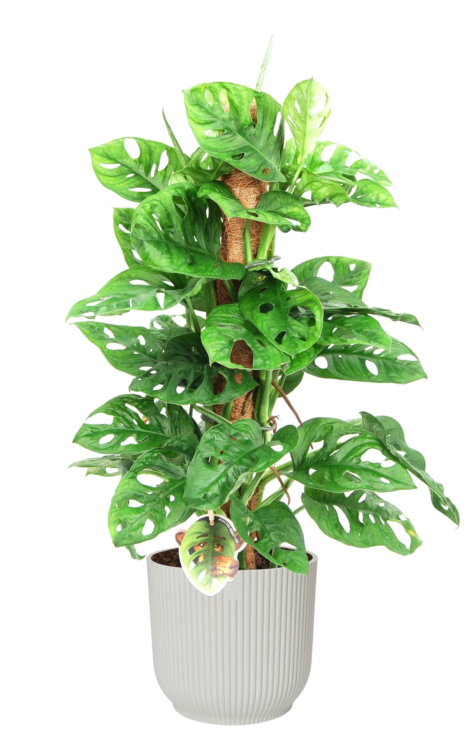 Monstera Monkey Leaf met mosstok in Vibes Fold Rond (zijdewit) ↑65 cm ⌀ 18