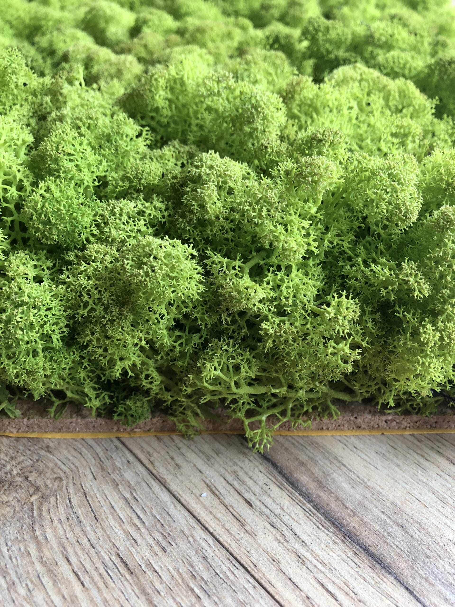 Mospaneel op kurk – Limegroen Rendiermos – 50 x 50 cm