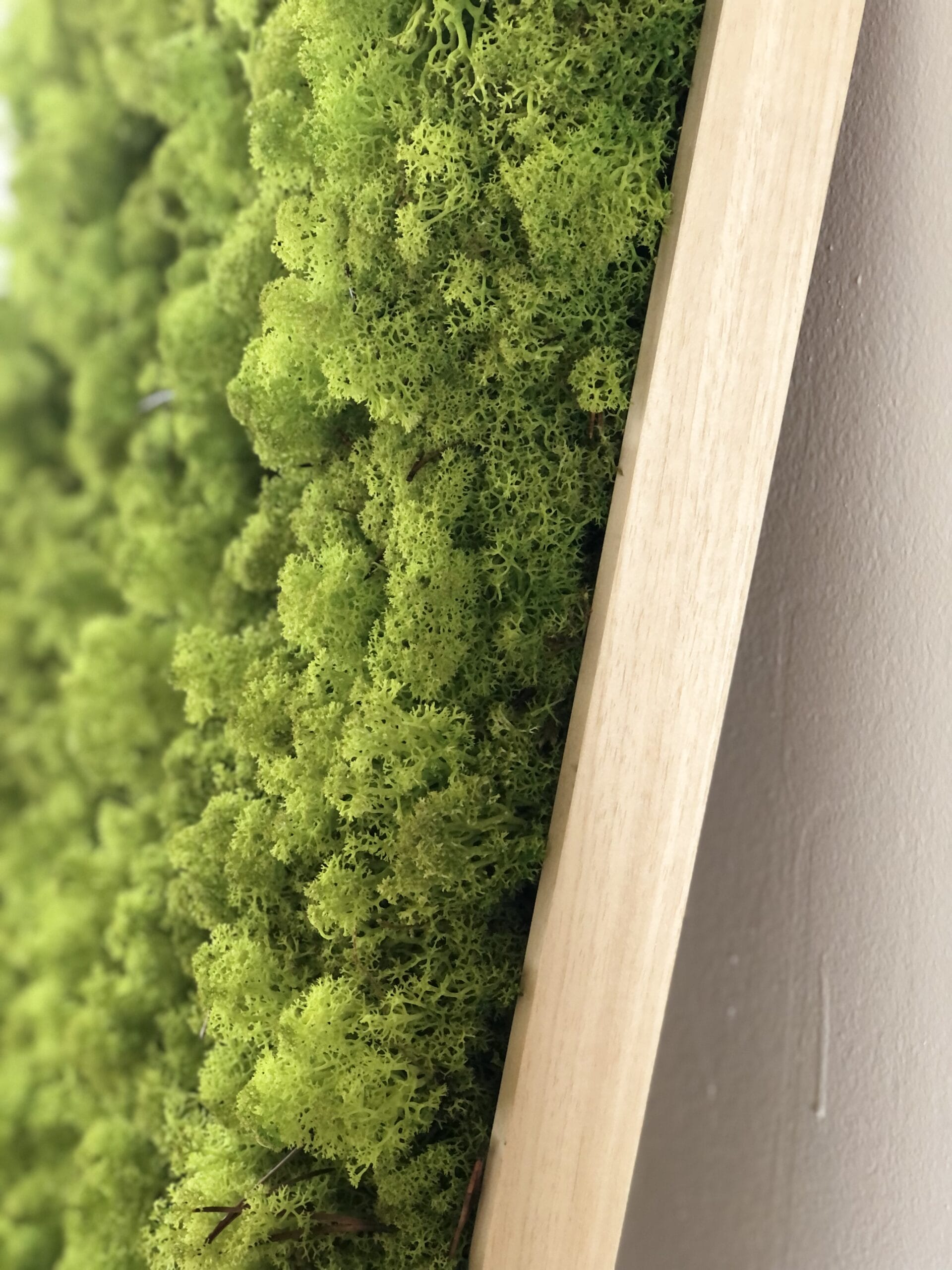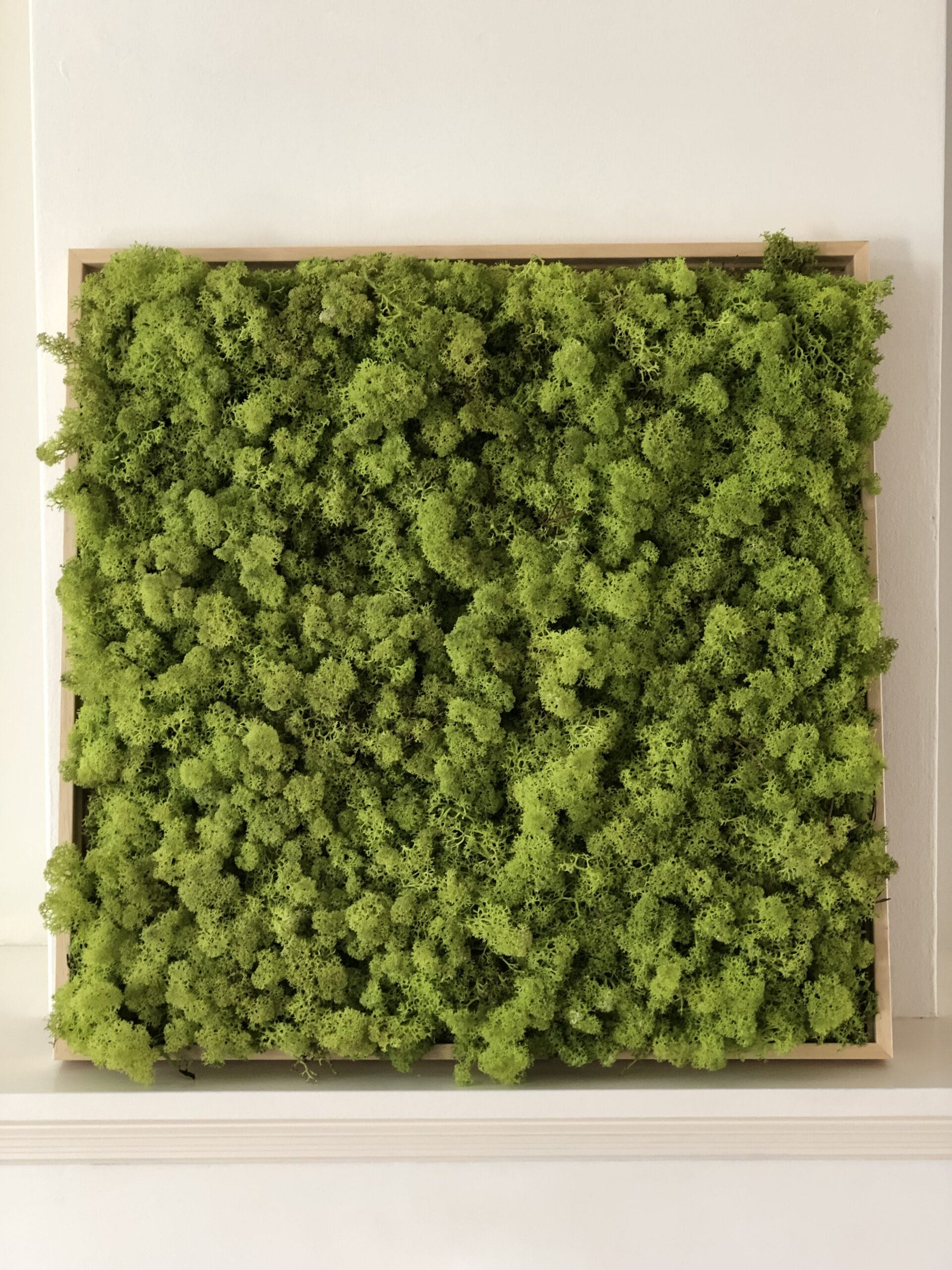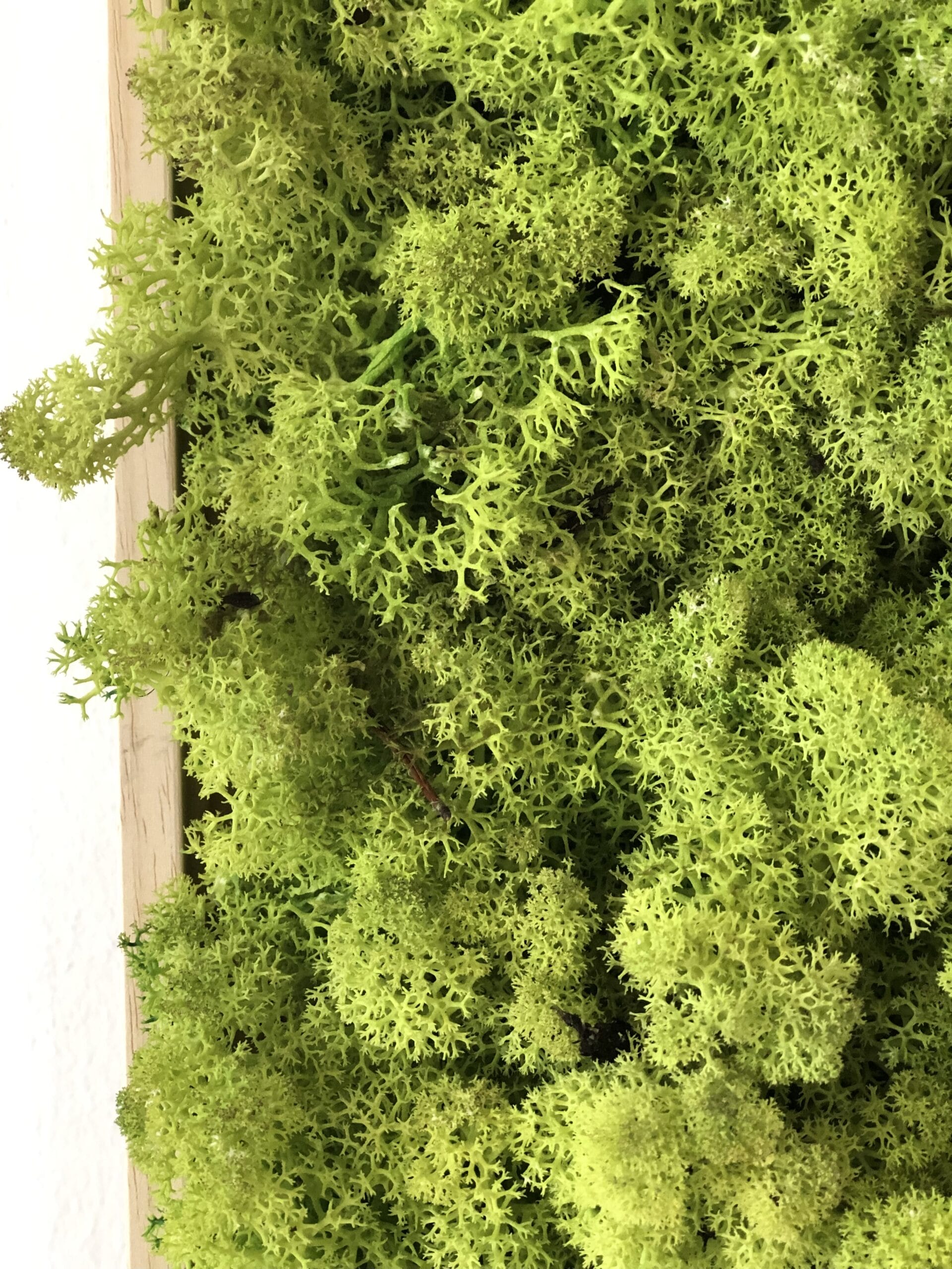 Mosschilderij in houten lijst – Limegroen Rendiermos – 50 x 50 cm