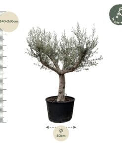 Olea Cultivo is een prachtige variëteit van de olijfboom die een vleugje mediterrane elegantie toevoegt aan tuinen en landschappen. Met zijn slanke stam, zilvergrijze bladeren en opvallende olijffruit, creëert deze boom direct een gevoel van rustieke allure en tijdloze charme. Olea Cultivo gedijt goed in zonnige en warme omstandigheden en voegt een vleugje mediterrane sfeer toe aan diverse buitenomgevingen. Met zijn vermogen om een gevoel van subtropische pracht toe te voegen, is deze variëteit een ideale keuze voor liefhebbers van weelderige en levendige landschappen die op zoek zijn naar een opvallende en onderhoudsvriendelijke toevoeging.