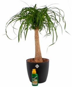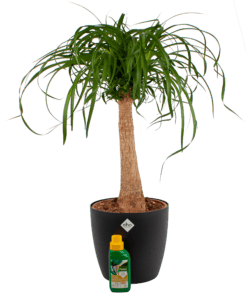 U mag de Beaucarnea gewoon Olifantspoot noemen, vanwege de vorm van zijn stam. Of Ponytail, vanwege de bladerkruin.