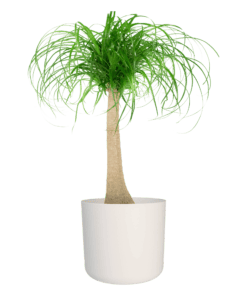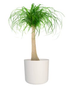 U mag de Beaucarnea gewoon Olifantspoot noemen, vanwege de vorm van zijn stam. Of Ponytail, vanwege de bladerkruin.