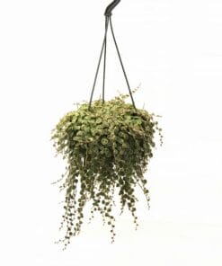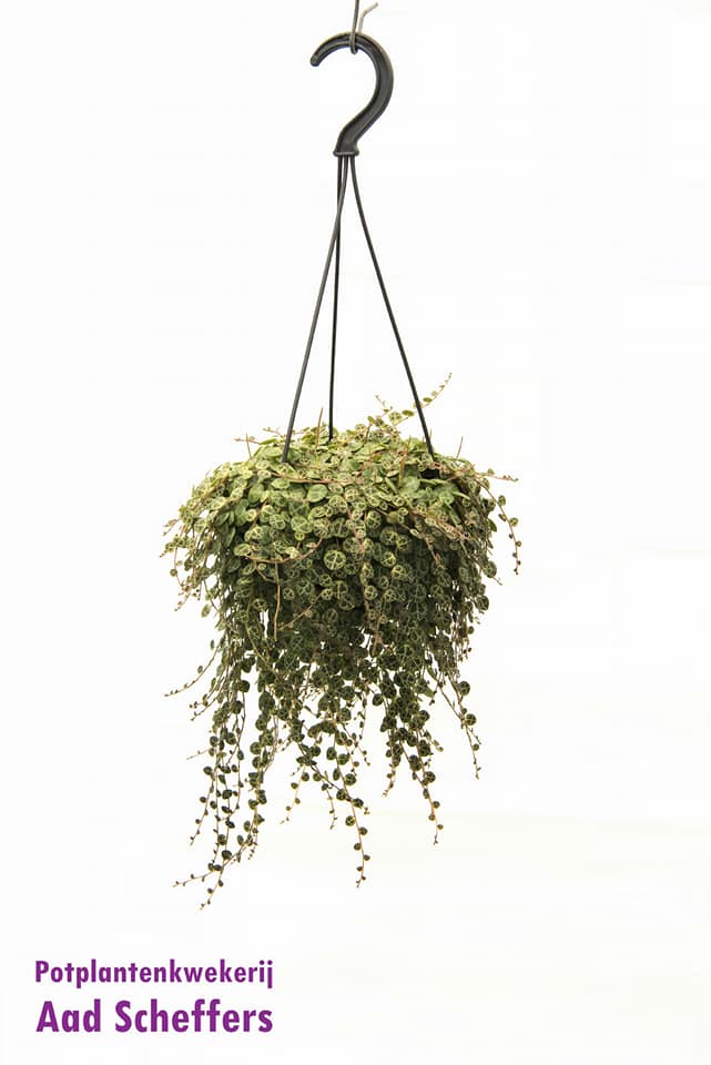 Deze Peperomia Prostrata uit de Cascada- familie is gekweekt als hangplant. Deze hangplant, die oorspronkelijk uit Zuid-Amerika komt, heeft kleinere ronde blaadjes. De kleine groene hangende bladeren hebben een bijzondere markering in het blad.