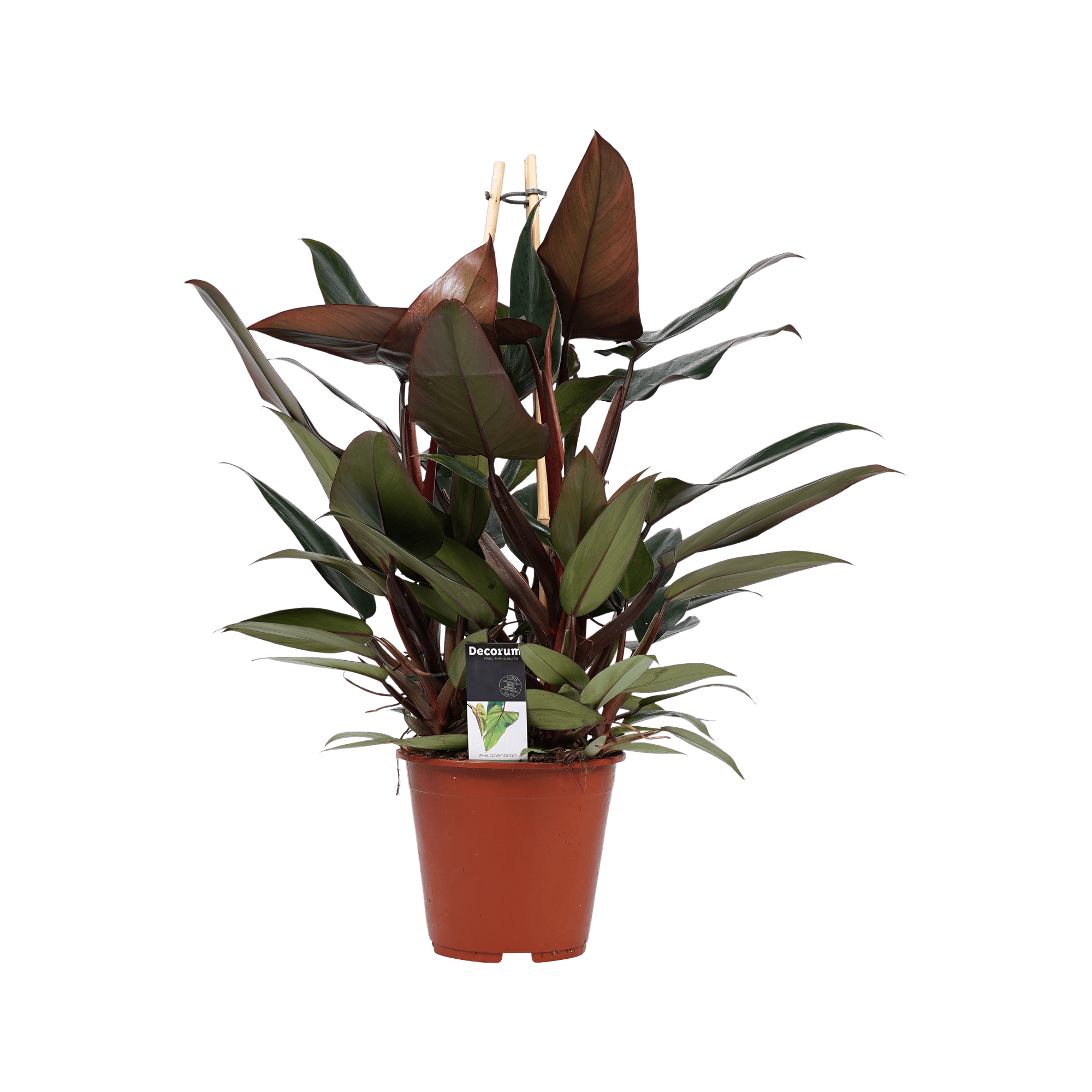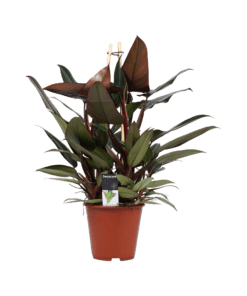 De Philodendron New Red is een klimmende kamerplant die bekend staat om zijn rijke rode wijnkleurige stengels. Het is een gemakkelijk te verzorgen kamerplant die een fantastische aanvulling zal vormen op uw collectie. De Philodendron New Red wordt ook wel de blozende Philodendron genoemd en is een bloeiende plant die inheems is in Colombia. Deze Philodendron behoort tot de Araceae familie en is bekend om zijn hartvormige bladeren en dieprode bloemen (hoewel het moeilijk is om een Philodendron in kamerplant bloemen te laten produceren).