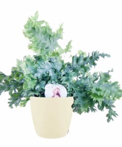 De Phlebodium aureum ‘Davana’ is een echte winnaar (Gouden Tulp 2020). Door zijn mooie grijsblauwe kleur en het sierlijk gekartelde blad is dit een echte eyecatcher in jouw interieur. En ook fijn: nagenoeg onverwoestbaar en makkelijk in verzorging. De Phlebodium wordt ook wel ‘zinkvaren’ of ‘blauwvaren’ genoemd. Deze varen staat graag op een lichte plaats, maar niet in de volle zon.