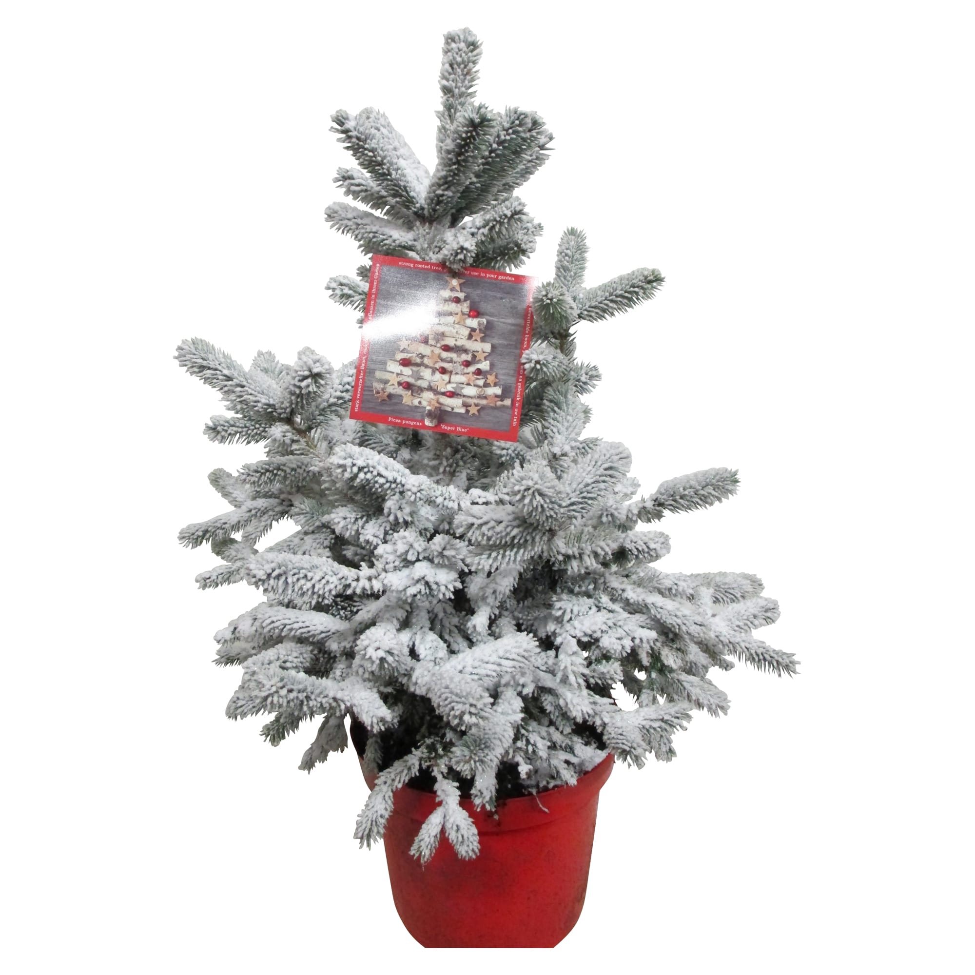 De Picea met sneeuw is een leuk alternatief voor een ‘echte’ kerstboom. Voor buiten of binnen.