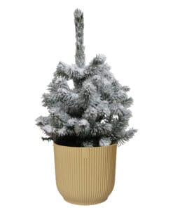 De Picea met sneeuw is een leuk alternatief voor een ‘echte’ kerstboom. Voor buiten of binnen.