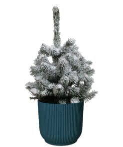 De Picea met sneeuw is een leuk alternatief voor een ‘echte’ kerstboom. Voor buiten of binnen.