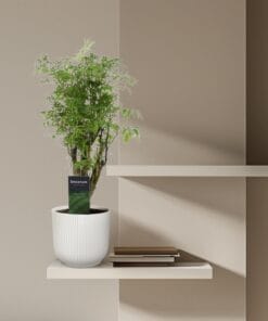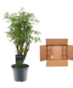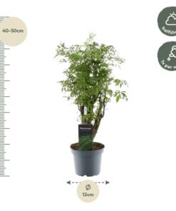 Laat de Polyscias Hawaiiana Ming stralen als een exotische ster in je binnenruimte. Met zijn fijne, luchtige bladeren en opvallende Ming-vormige groei, brengt deze kamerplant een vleugje oosterse charme in huis. De Polyscias Hawaiiana Ming gedijt in diverse lichtomstandigheden en vereist minimaal onderhoud, waardoor hij perfect is voor zowel beginners als ervaren plantenliefhebbers. Creëer een zen-achtige sfeer in je leefruimte met de unieke uitstraling van de Polyscias Hawaiiana Ming en laat deze plant als een rustgevend kunstwerk floreren in je groene oase.