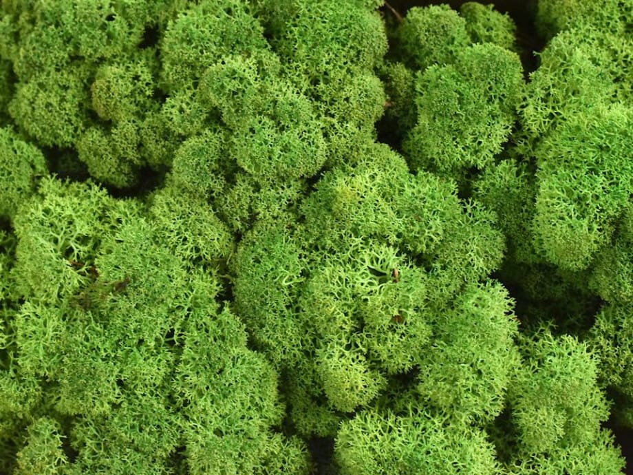 Rendiermos behoort tot de korstmossen en is uit de natuur groen of grijs van kleur. De naam rendiermos is afgeleid van de plant die op een hertengewei lijkt. Ons bewerkte rendiermos is volledig ondergedompeld in een verf op waterbasis en is niet schadelijk voor dier en milieu. Het rendiermos is daarom ideaal voor het maken van een moswand. Voor een moswand van rendiermos heeft u ongeveer 8 kg per vierkante meter nodig. Het rendiermos is alleen geschikt voor decoratieve doeleinden en alleen geschikt om binnen te gebruiken. Het mos heeft dus ook geen onderhoud nodig, zoals water geven. Dit is niet aan te raden. Het mos is niet levend, maar voelt als vers, echt en flexibel aan en is behandeld met een brandvertragend middel. Rendiermos is een natuurproduct, hierdoor is het mogelijk dat producten kunnen variëren in kleur.