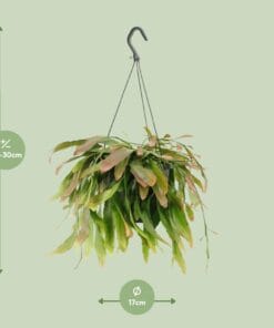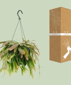 Stel je voor, Rhipsalis Red Coral, een verbluffende kamerplant die ook bekend staat als Rhipsalis! Met zijn levendige rode kleur en stromende, koraalachtige vorm, voegt deze unieke plant een vleugje exotische schoonheid toe aan elke ruimte. Oorspronkelijk afkomstig uit de regenwouden van Centraal- en Zuid-Amerika, gedijt Rhipsalis Red Coral in omgevingen met weinig licht, waardoor het perfect is voor binnenruimtes. Dankzij zijn lage onderhoudsniveau is het een populaire keuze voor plantenliefhebbers van alle niveaus. Breng een stukje tropisch paradijs in je huis met Rhipsalis Red Coral, de ultieme kamerplant voor stijl en eenvoud. Rhipsalis, een mooie hangplant, gedijt op een plek met halfschaduw of zon. Het heeft eens in de 8-10 dagen water nodig, waarbij de grond tussen het water geven iets mag opdrogen. Deze plant geeft de voorkeur aan goed doorlatende grond, zoals een mix van veenmos en perliet. Bemest Rhipsalis eens per maand tijdens het groeiseizoen (lente en zomer) met een evenwichtige vloeibare meststof verdund op de helft van de aanbevolen sterkte. Vermijd bemesting in de winter. Met de juiste verzorging zal Rhipsalis gezond groeien en weelderige schoonheid toevoegen aan je ruimte.Rhipsalis Red Coral is een unieke en fascinerende plant die behoort tot de cactusfamilie, maar in tegenstelling tot andere cactussen, heeft het geen doornen. De levendige rode stelen lijken op onderwaterkoraal, vandaar de naam. Naast het toevoegen van een vleugje exotische schoonheid aan elke binnenruimte, staat het ook bekend om zijn luchtzuiverende eigenschappen. Het is echter belangrijk op te merken dat Rhipsalis Red Coral strikt bedoeld is voor decoratieve doeleinden. Dus, hoewel het je oog kan trekken en een mooie toevoeging aan je huis kan zijn, vergeet alsjeblieft niet om het niet per ongeluk als een snack te beschouwen!Rhipsalis Red Coral is een unieke vetplant die vaak wordt aangeduid als Rhipsalis.Deze plant is ongeveer 25 cm hoog en wordt geleverd in een potmaat van 17 cm, waardoor hij geschikt is voor kleinere ruimtes of als decoratieve toevoeging aan elke kamer.Rhipsalis Red Coral gedijt goed op halfschaduwrijke plekken, waardoor het een perfecte keuze is voor binnenbeplanting of gebieden die indirect zonlicht ontvangen.Rhipsalis staat bekend om zijn hangende en cascaderende groeigewoonte, waardoor het een uitstekende keuze is voor hangmanden of als een kruipende plant op planken.Leuk feitje: Rhipsalis is een epifytische cactus, wat betekent dat het van nature groeit op bomen en voedingsstoffen en vocht uit de lucht opneemt. Deze unieke eigenschap maakt het een uitstekende onderhoudsarme plant voor degenen die graag een vleugje natuur binnenshuis willen.